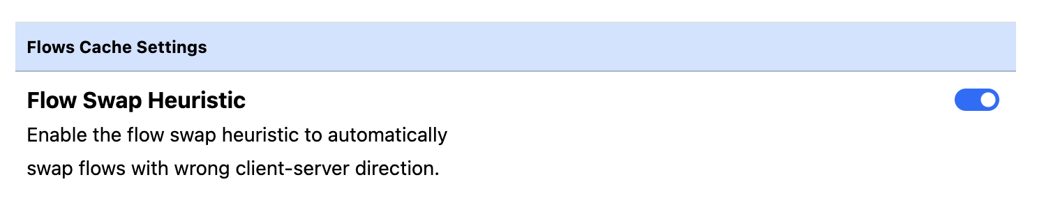 For this reason, we have introduced the ability to disable flow swapping heuristics in case this is incompatible with your traffic analysis policies. Just select Settings -> Preferences -> Cache Settings to set your cache settings policy.