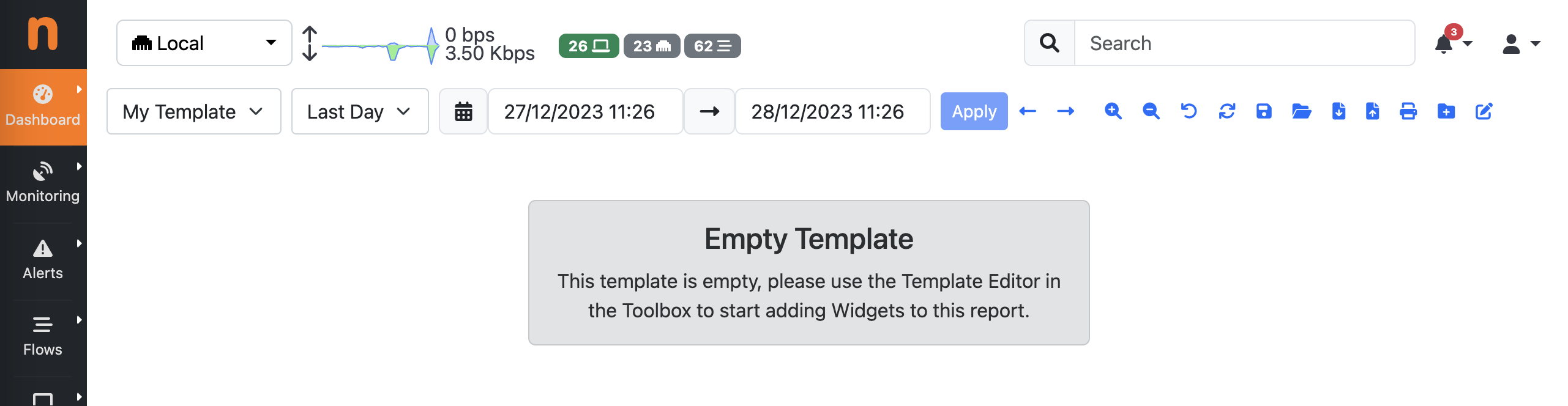 The Dashboard -> Traffic Report page includes a button in the toolbar to create a new template, as shown in the picture below.