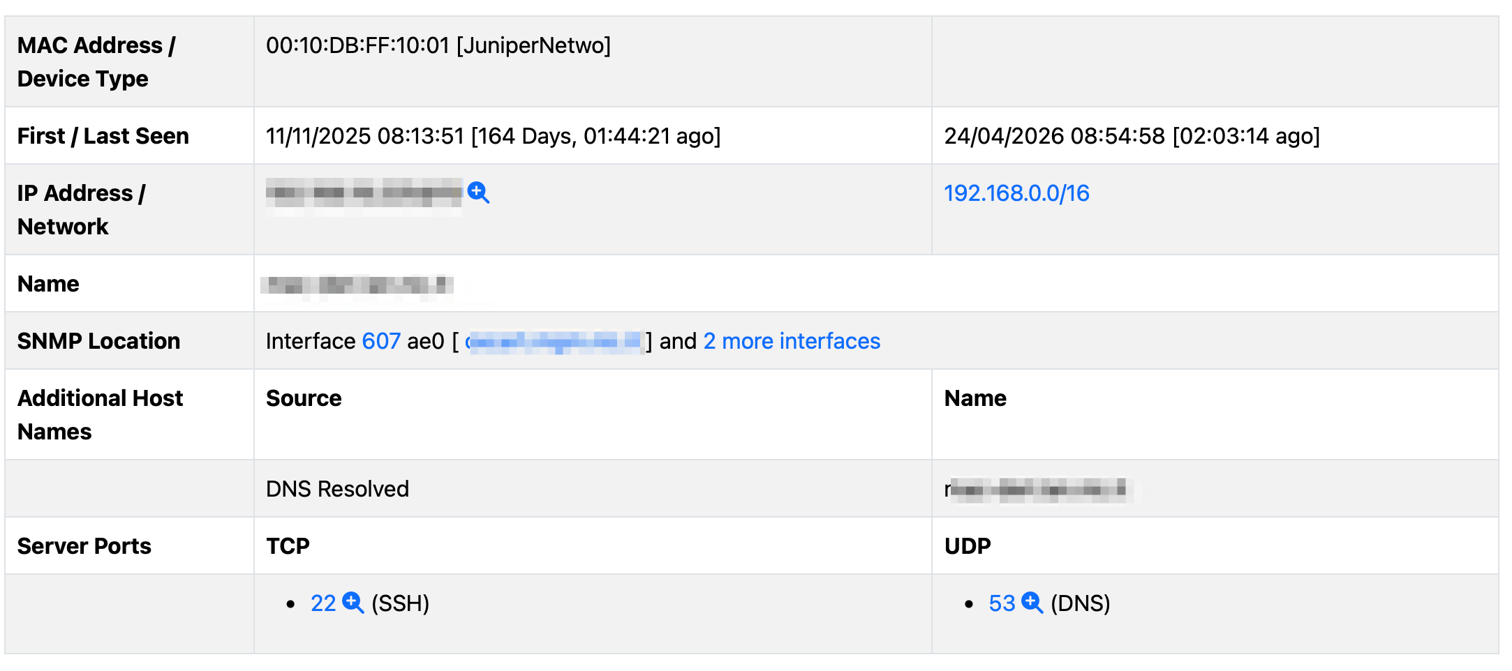 In addition to this, if SNMP has been enabled, ntopng shows where the host MAC address has been observed (SNMP device IP and interface index).