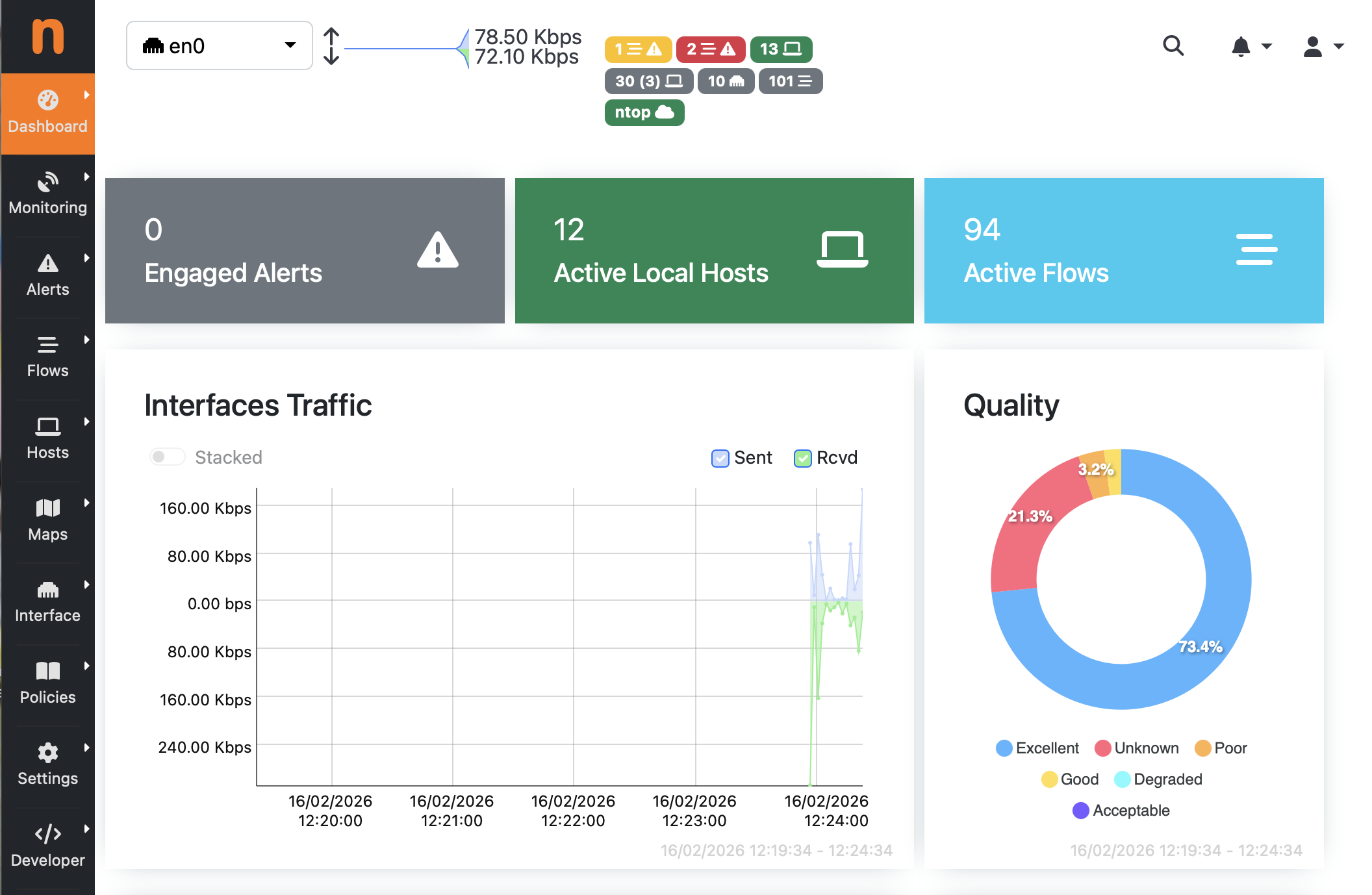 After scanning, ntopng shows you:
